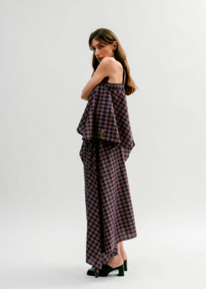 ASYMMETRIC CHECKERED SKIRT SUIT