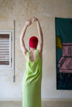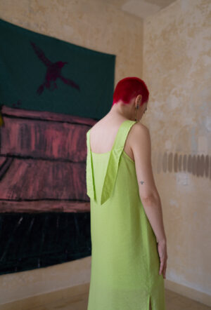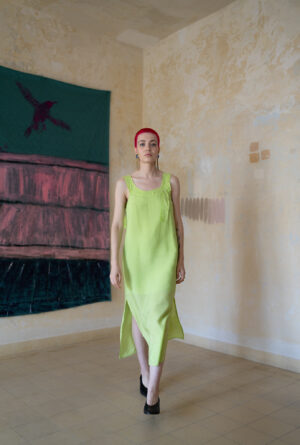 One of a kind green dress. Crafted from ultra-thin, breathable silk organza.