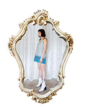 A one of a kind white to blue striped coupon sarafan dress made of vintage soviet cotton. “A” silhouette. The length of a dress you can change by using shoulder’s clips. You can wear it like a tunic with jeans, trousers, bicycles or skirt and combine it with a different kind of tops like t-shirt or turtleneck.