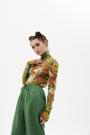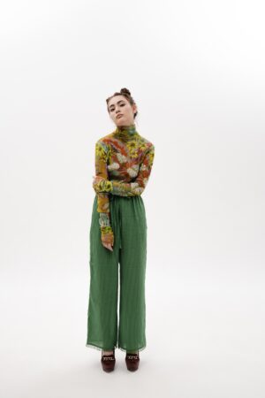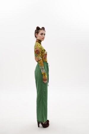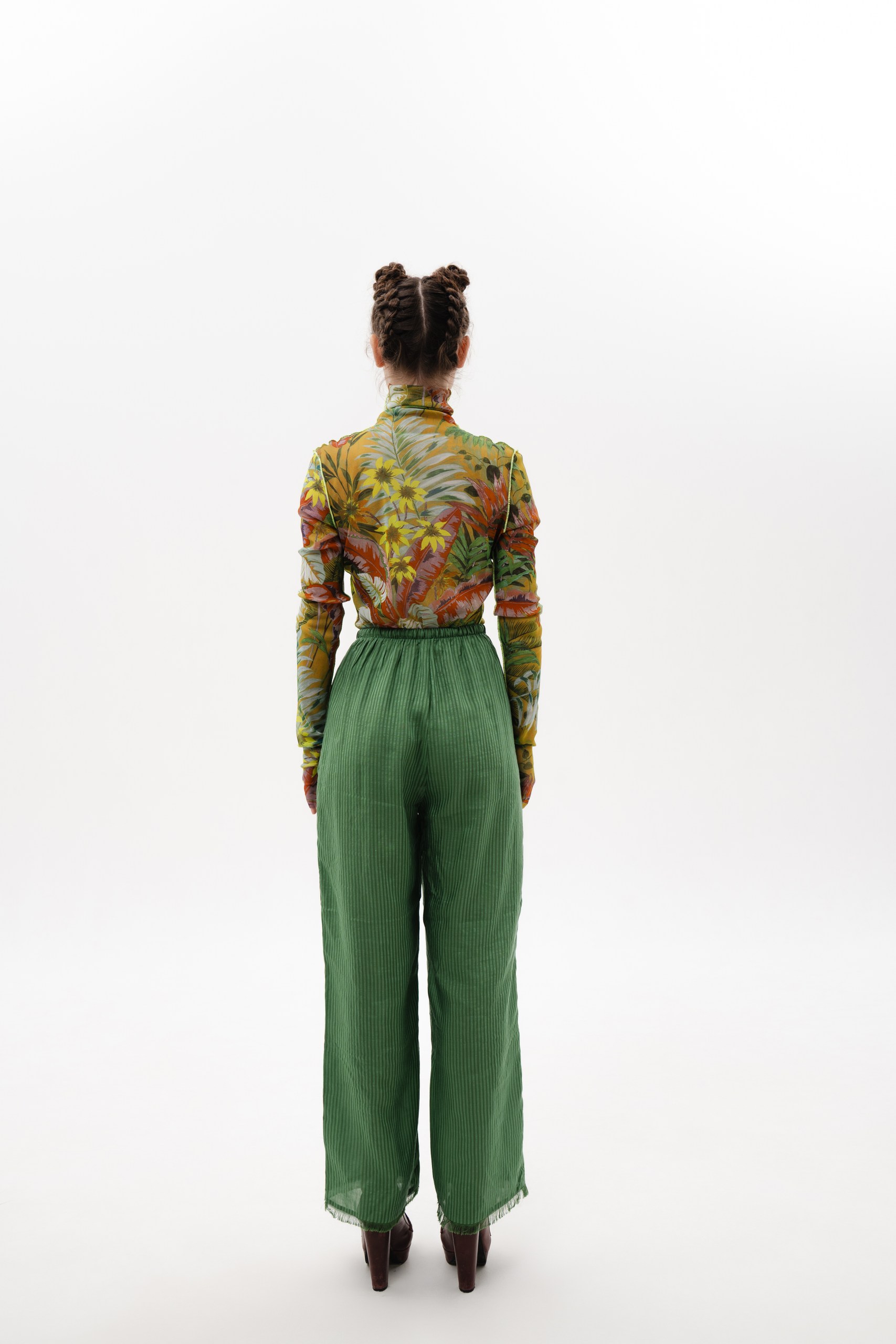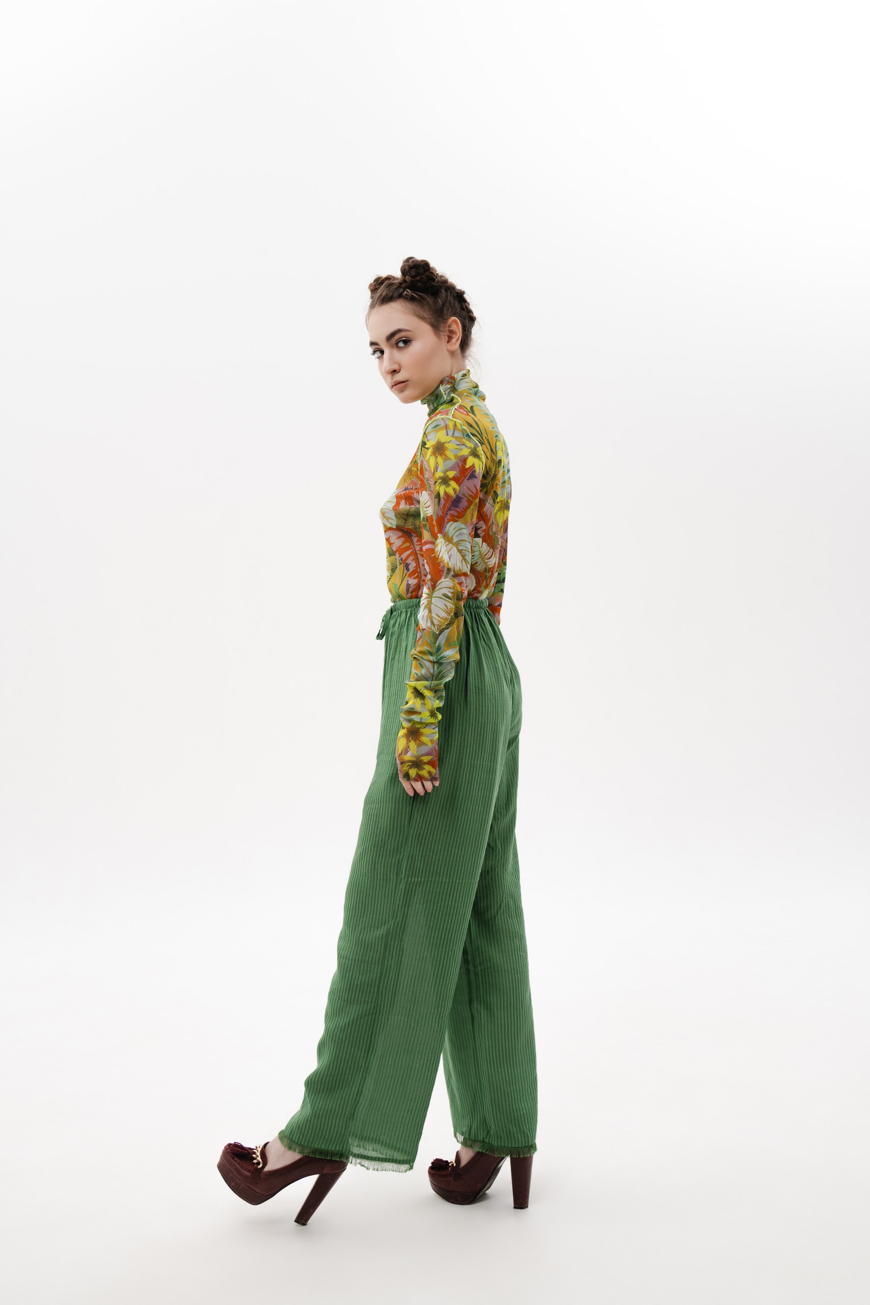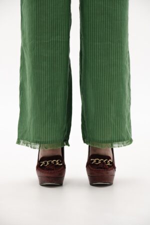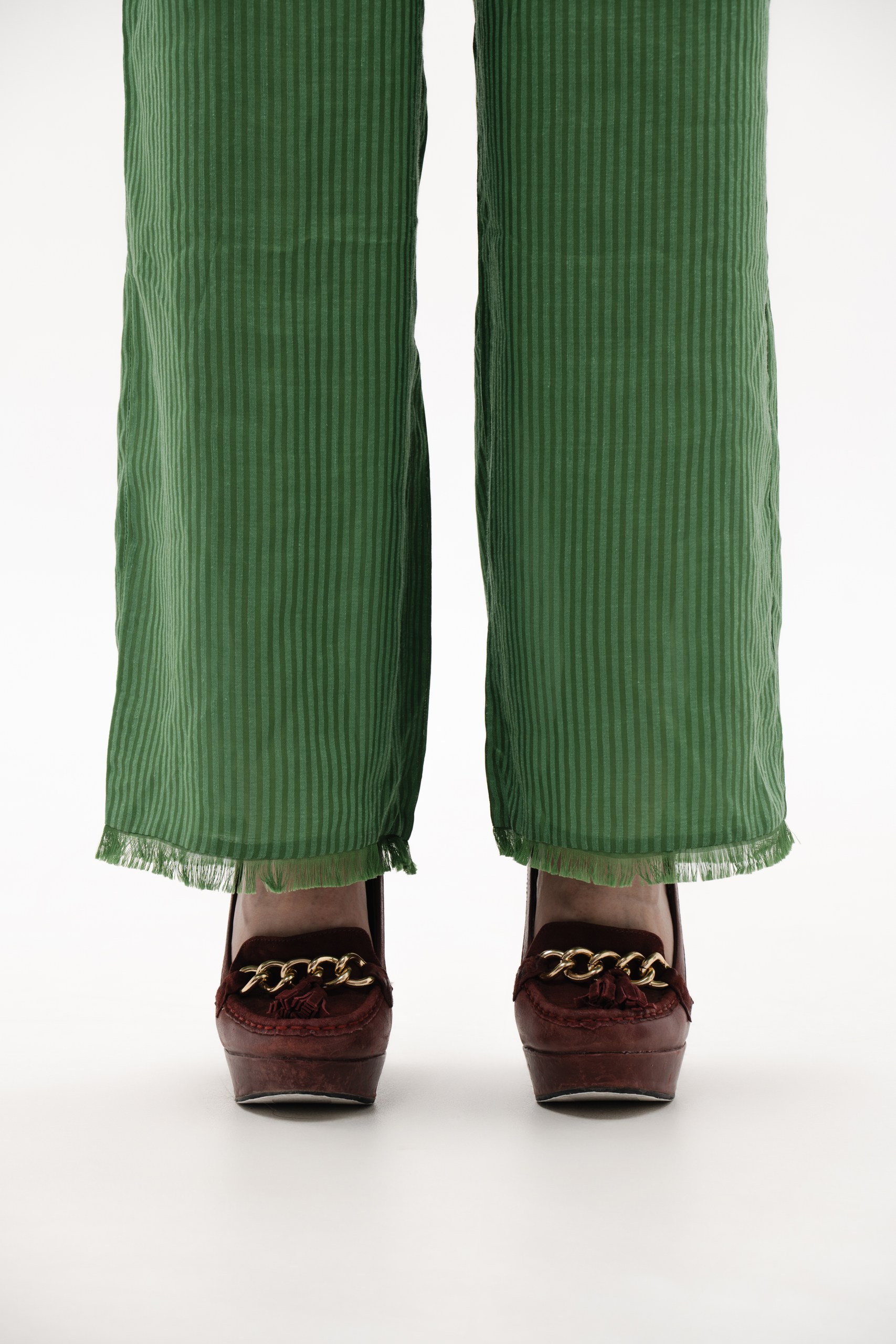 CRAFTED FROM GREEN ITALIAN VISCOSE-LINEN WITH A SOFT STRIPED TEXTURE.
