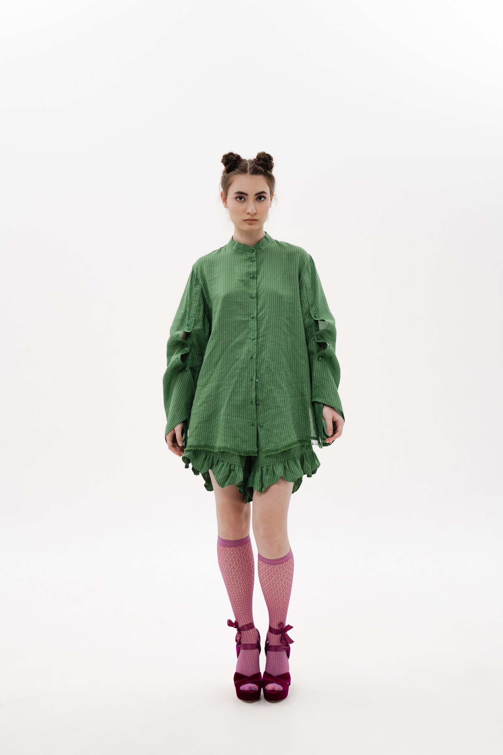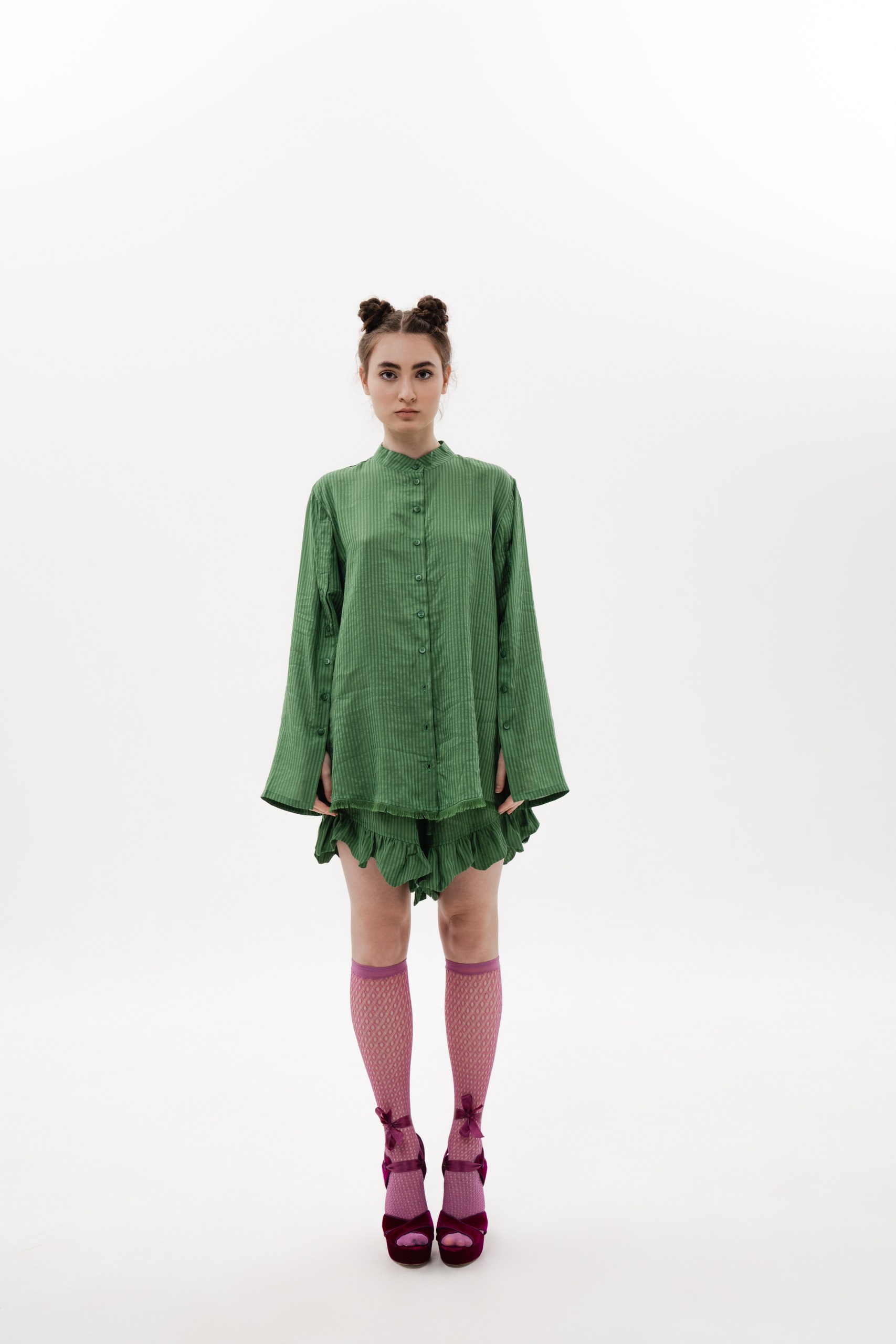 STRIPED GREEN SUIT — SHIRT & SHORTS