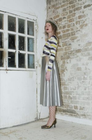 Super soft and comfortable bodycon fit longsleeve shirt with diagonal blurred strips and crewneck. Available in size S.