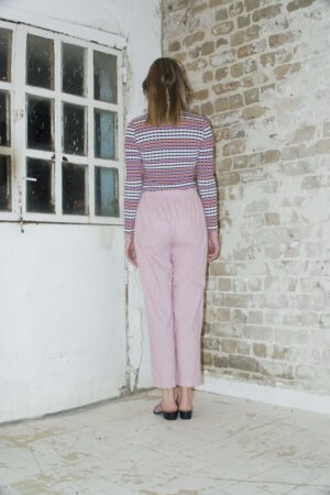 The baby pink MARY’N cotton pants are regular fit. Super comfortable! The pockets are imitated.